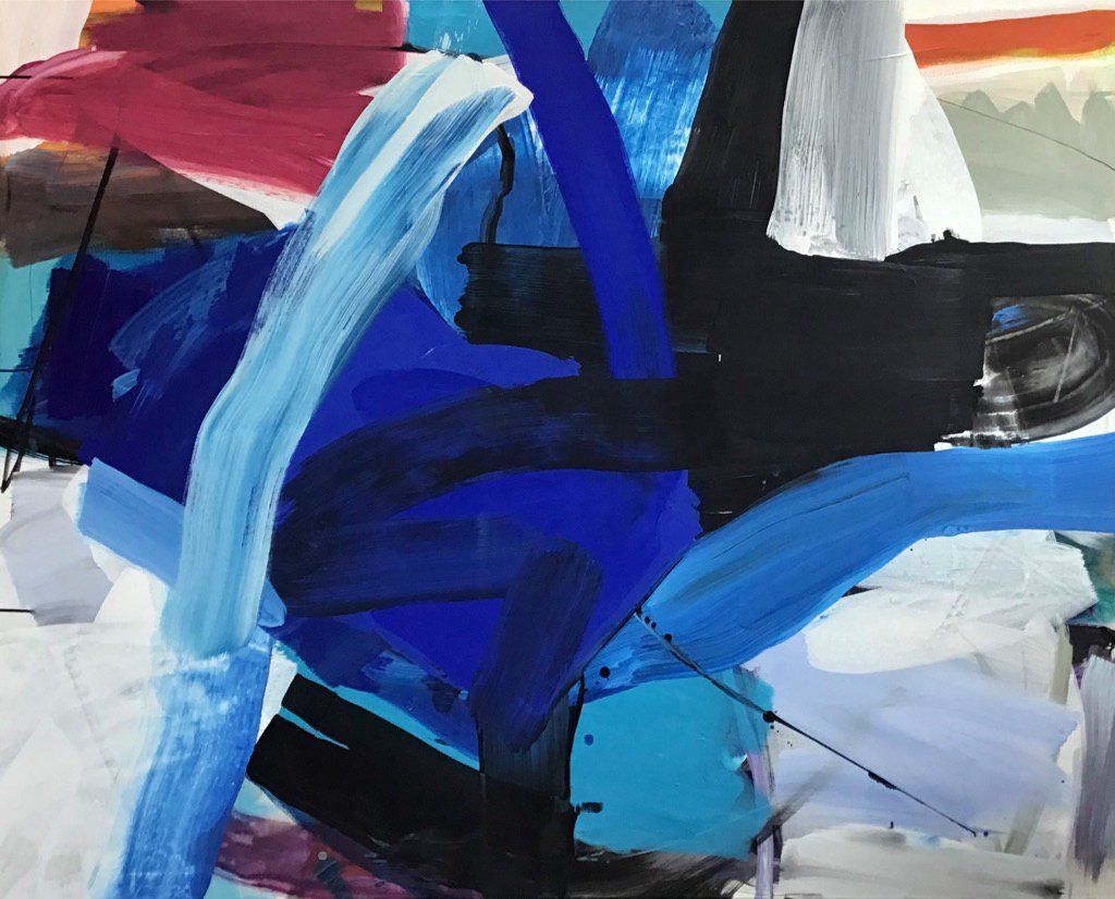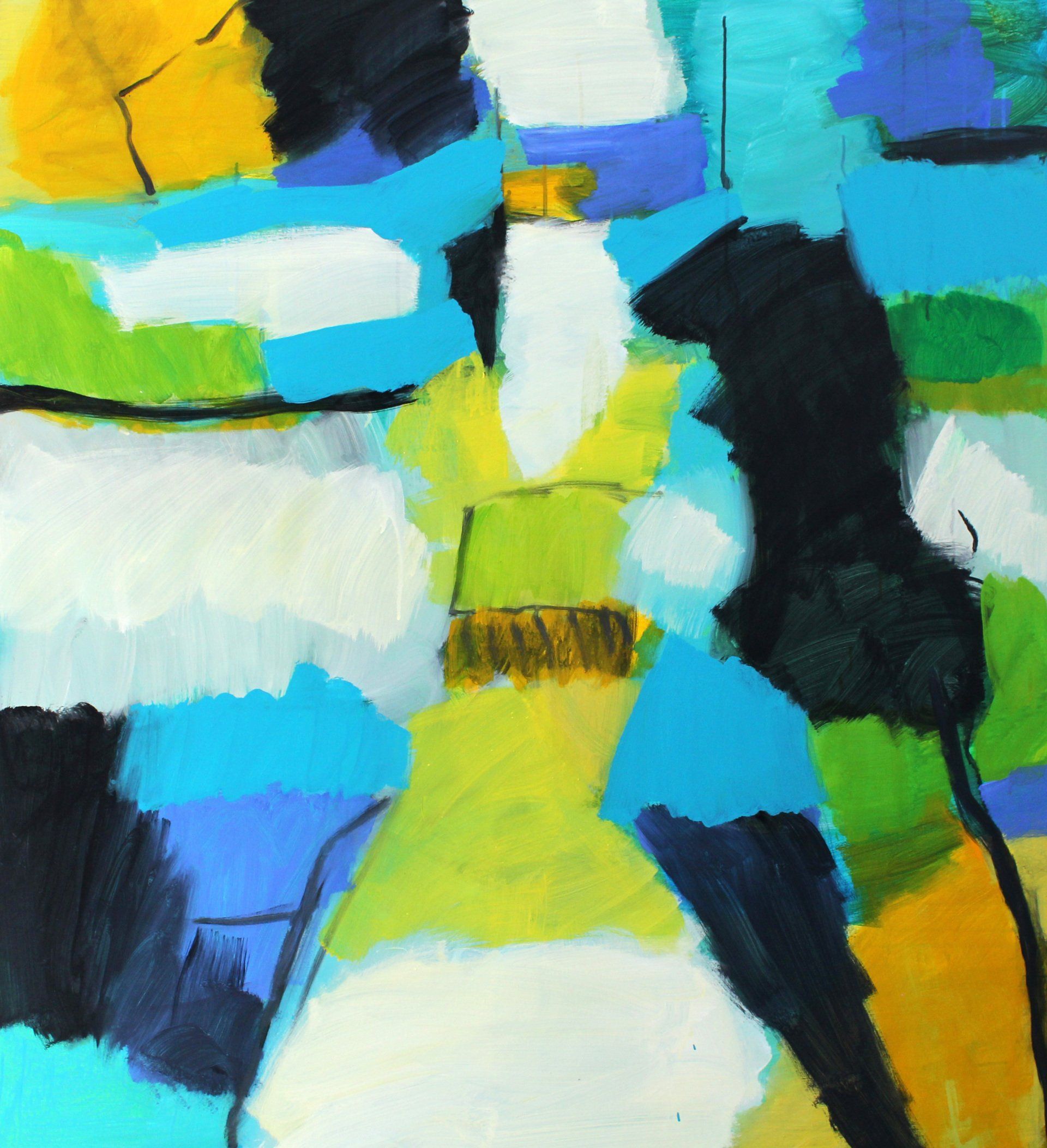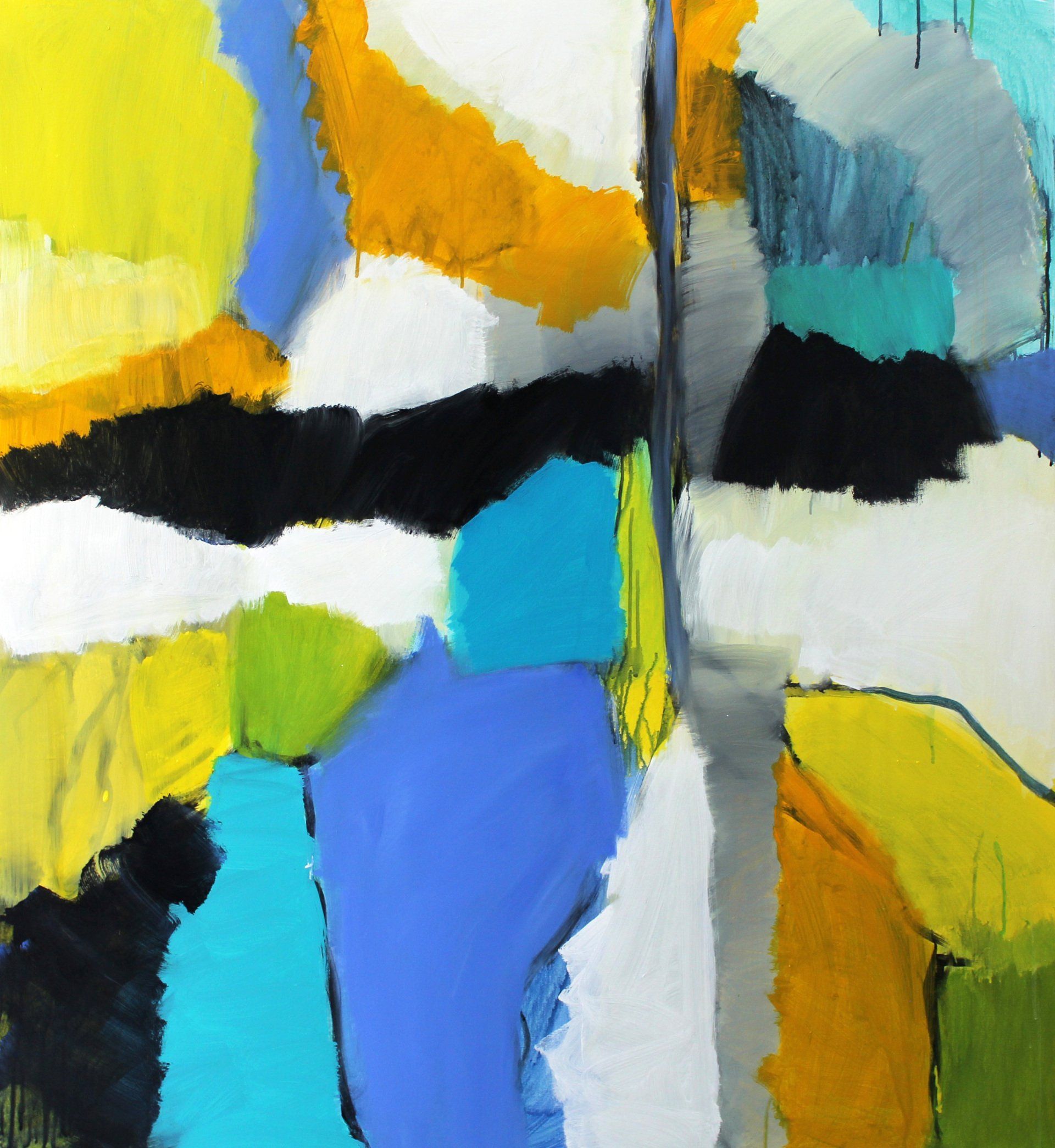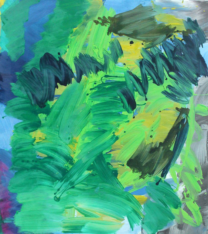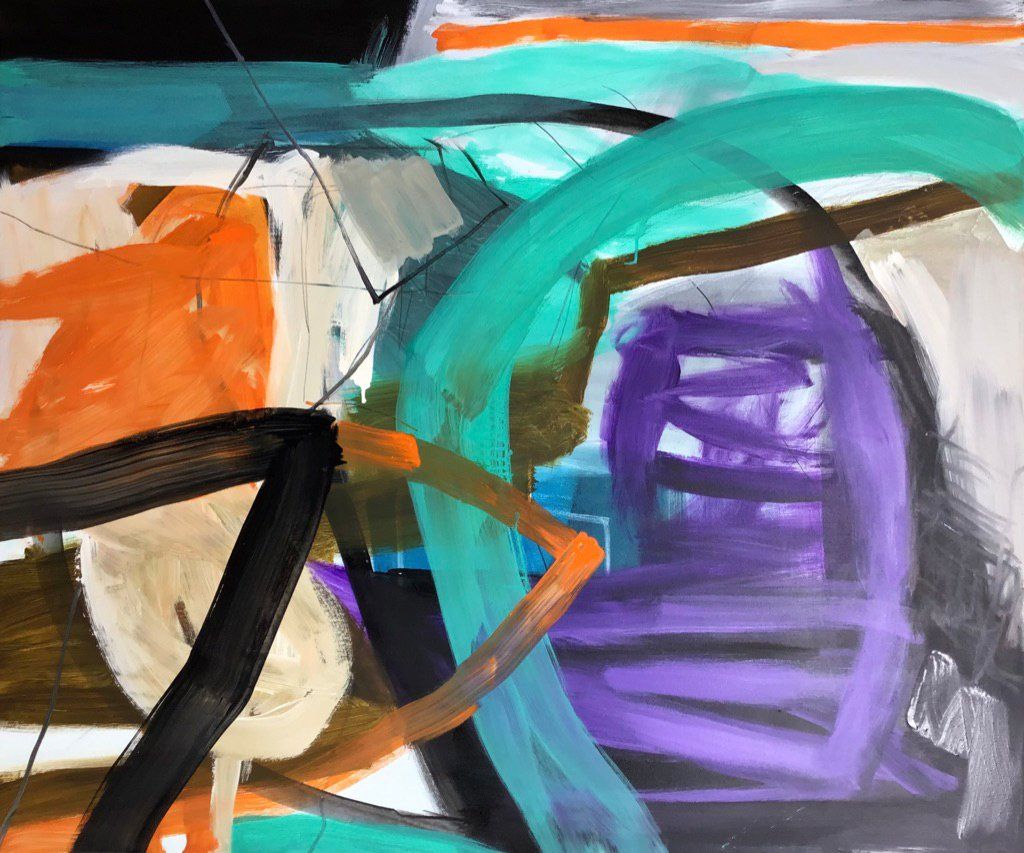Die Farbe kann gedämpft sein oder kontrastreich, immer ist sie schwergewichtig. Dynamische Farbschwünge verschlingen sich, verbreitern sich zu richtungsweisenden Bahnen, verdichten sich zu Knäueln und geben verschiedene Perspektiven frei. Sie schichten sich zu Gerüsten, die dahinterliegende Ebenen erkennen lassen, weisen über den Bildraum hinaus und haben trotzdem einen klaren inneren Schwerpunkt.