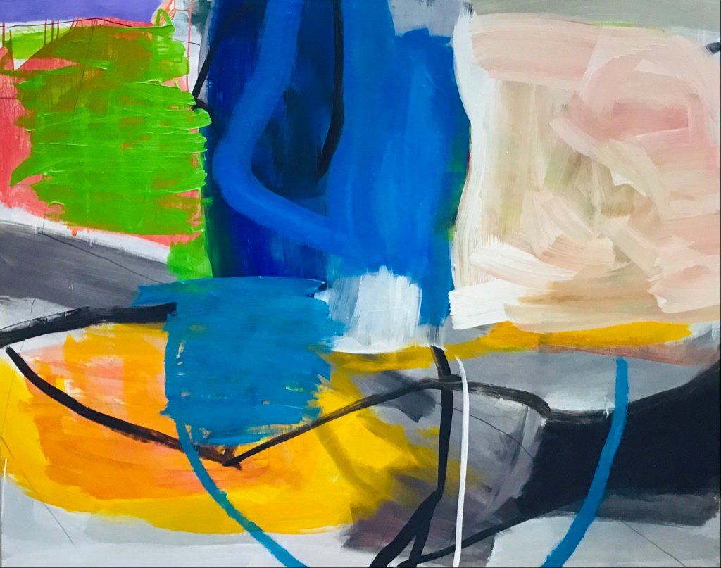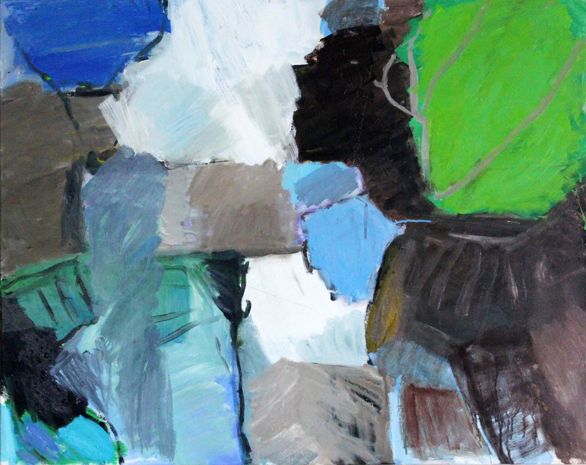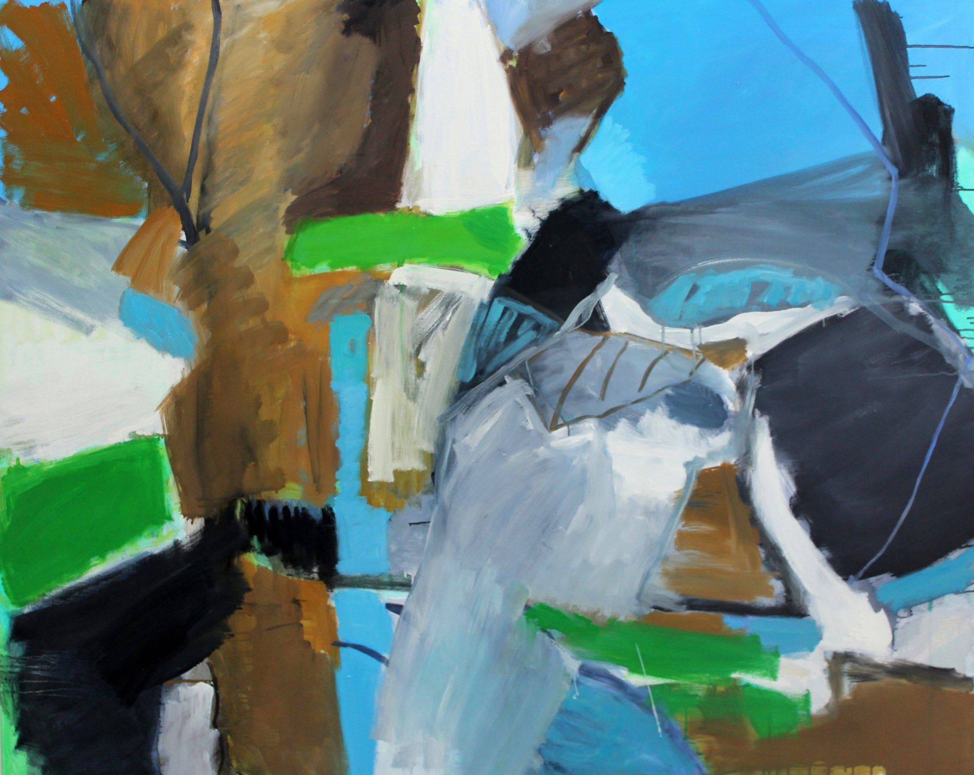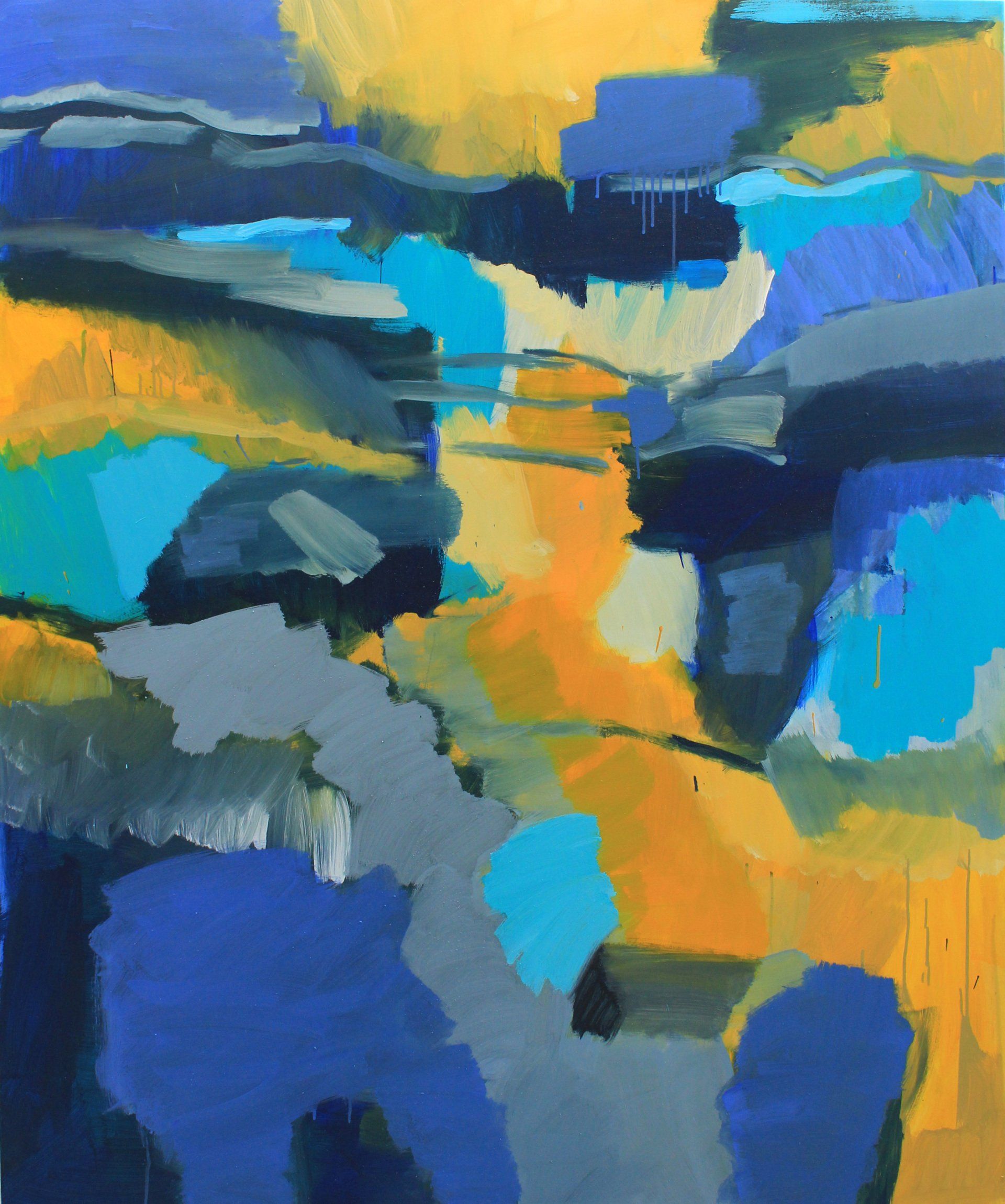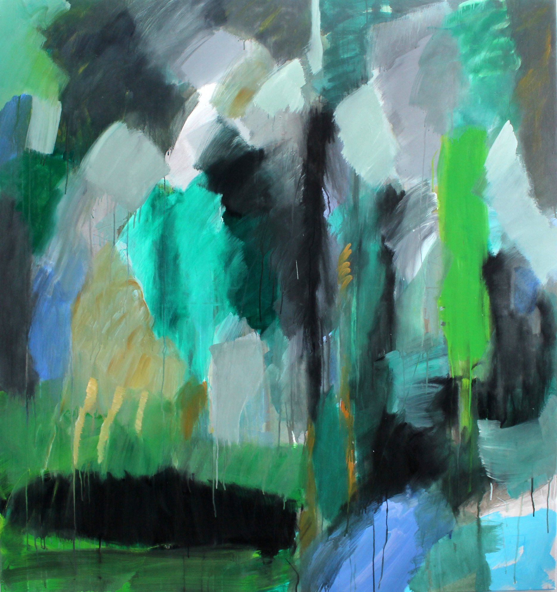 Die Farbe kann gedämpft sein oder kontrastreich, immer ist sie schwergewichtig. Dynamische Farbschwünge verschlingen sich, verbreitern sich zu richtungsweisenden Bahnen, verdichten sich zu Knäueln und geben verschiedene Perspektiven frei. Sie schichten sich zu Gerüsten, die dahinterliegende Ebenen erkennen lassen, weisen über den Bildraum hinaus und haben trotzdem einen klaren inneren Schwerpunkt.