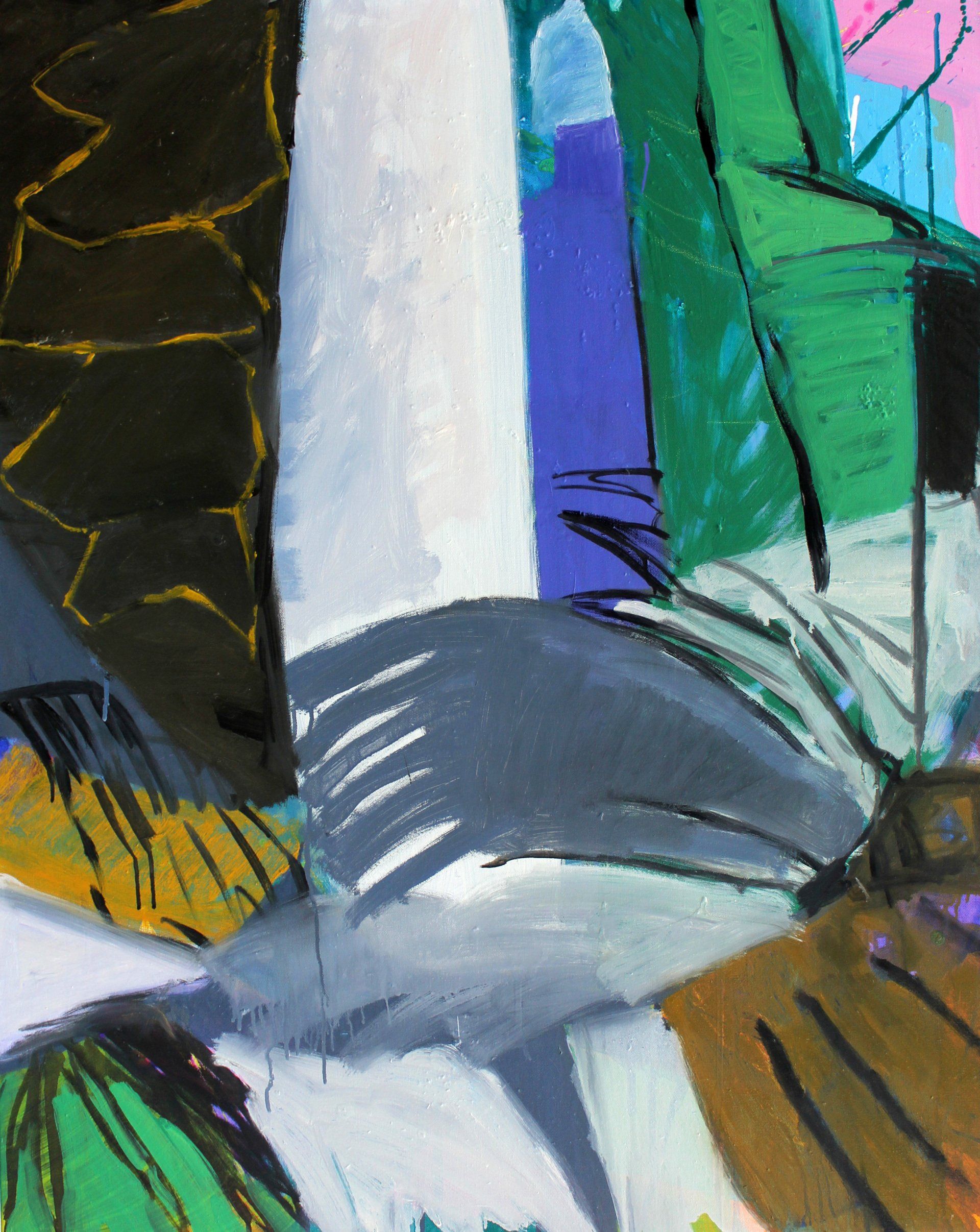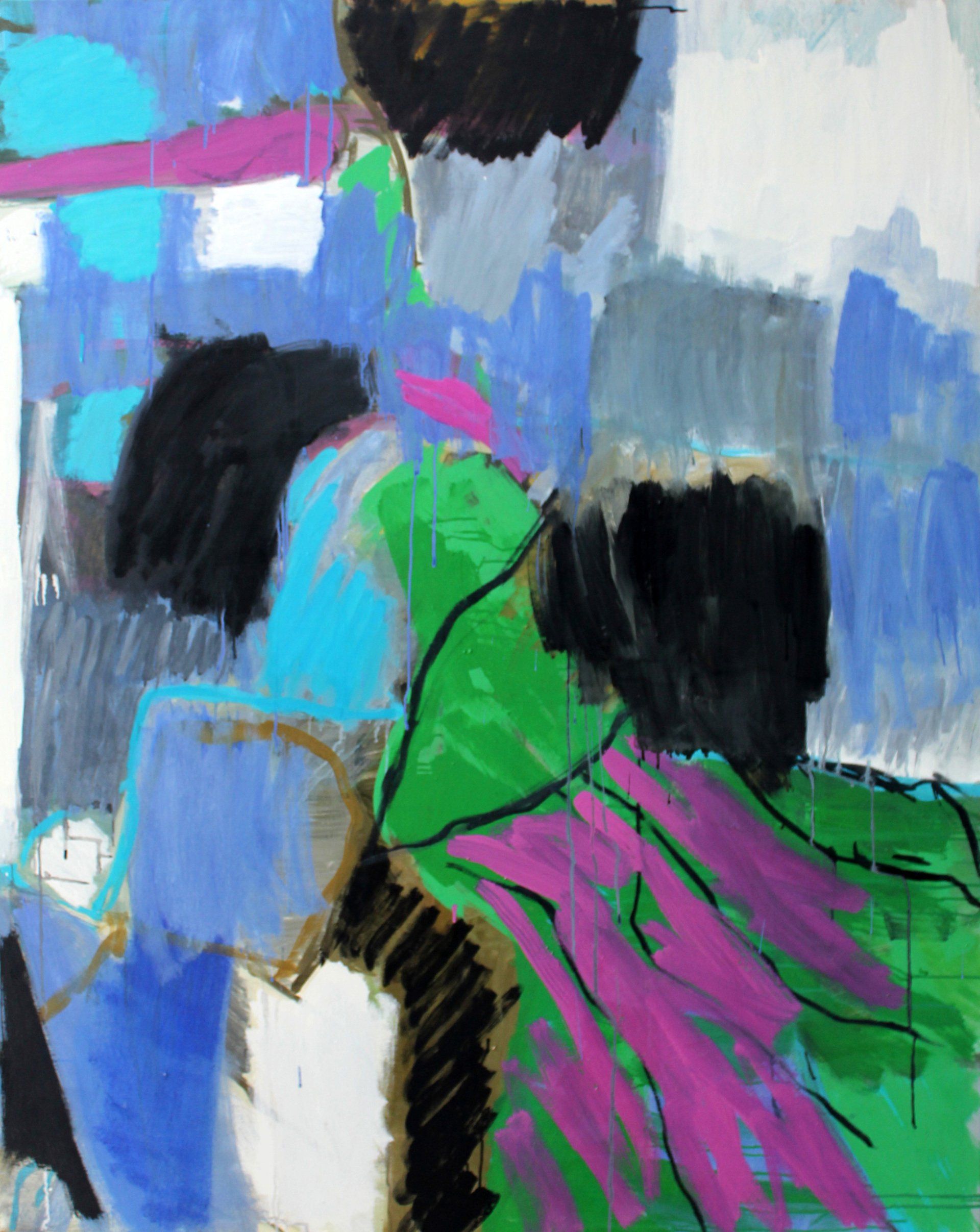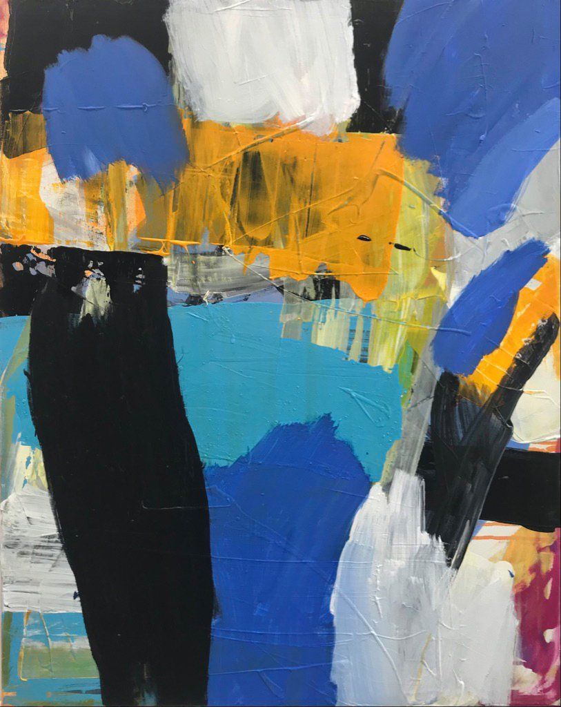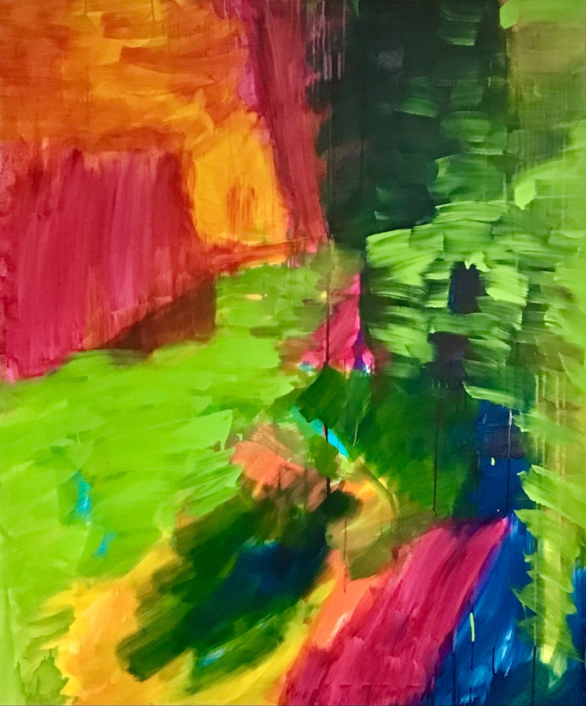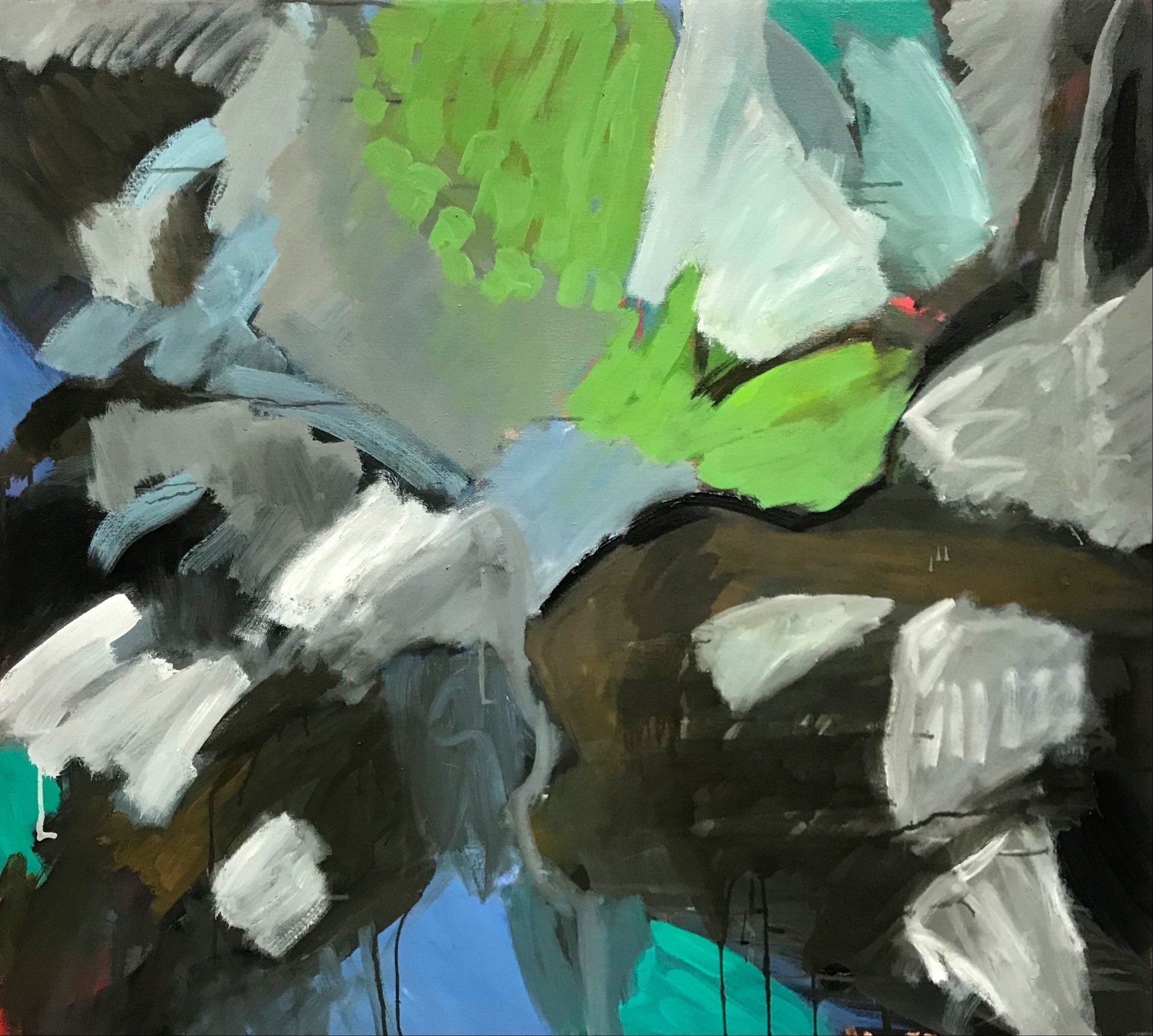 Die Farbe kann gedämpft sein oder kontrastreich, immer ist sie schwergewichtig. Dynamische Farbschwünge verschlingen sich, verbreitern sich zu richtungsweisenden Bahnen, verdichten sich zu Knäueln und geben verschiedene Perspektiven frei. Sie schichten sich zu Gerüsten, die dahinterliegende Ebenen erkennen lassen, weisen über den Bildraum hinaus und haben trotzdem einen klaren inneren Schwerpunkt.