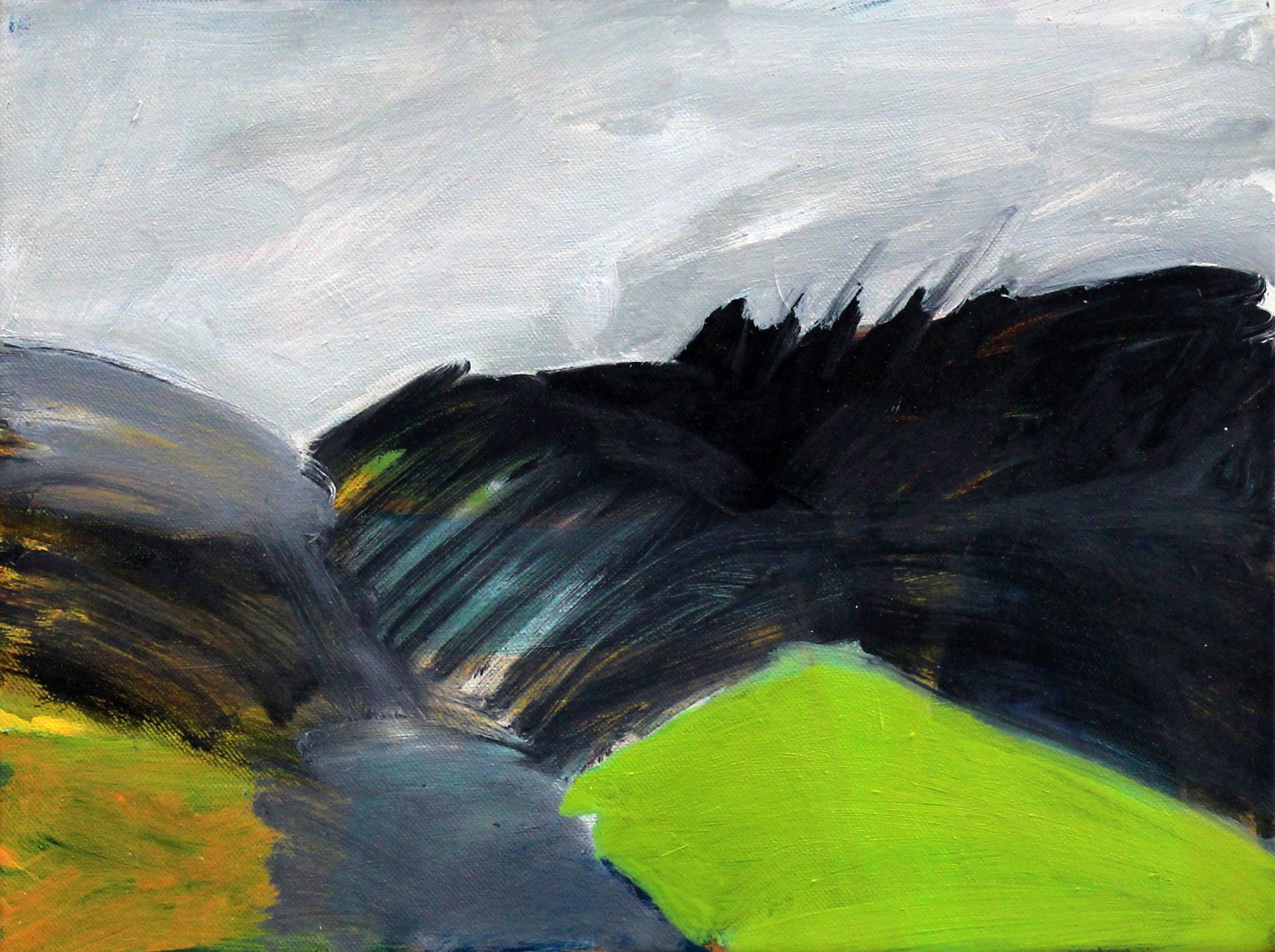 Eine hügelige Landschaft mit Waldkuppen versperrt den Blick auf einen fernen Horizont. Keine reissenden Gebirgsströme zerteilen das Land, sondern träge, ruhig diahinströmende Flüsse und Bäche bewegen sich gemächlich zwischen den sanft ansteigenden Bergrücken. Unterhalb des Waldsaumes beginnt die bunte Schichtung von Kulturflächen. Im Frühjahr ist es die starre Parallelität der frisch gezogenen Furchen, welche den Ordnungsinn des Auges sättigt. In den Niederungen sammelt sich Nebel und die graubraunen Brachflächen wachsen von Jahr zu Jahr. Der leichtfüssige Frühling verschwendet seine Farbenpracht in kurzen Atemstössen von Grün und strahlendem Gold, von Silber und Weiss, die Waldinseln auf den Bergkämmen erwachen zu zittrigem Grün und auf dem Waldboden verstecken sich blaue Veteranen unter ihren schwarzgrünen Schildern.