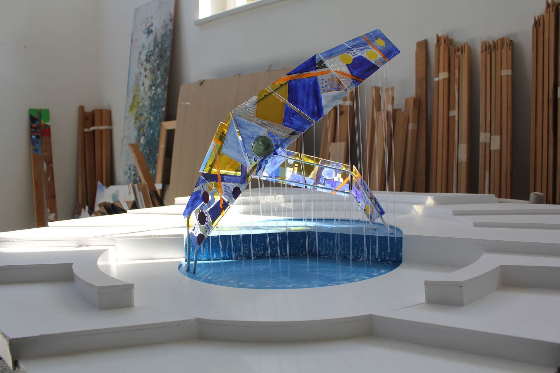 Brunnenanlage Modell - Glaselemente und Edelstahlkonstruktion